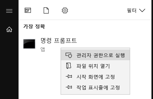 1. cmd를 관리자 모드로 실행한다.