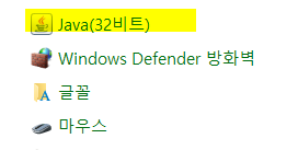 아래와 같이 제어판에서 Java아이콘이 보인다거나 혹은 아이콘은 깨져 보이고 글자만 Java가 남아있다거나.