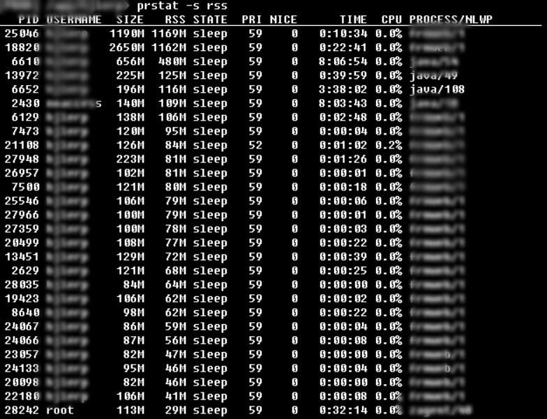 prstat -s rss