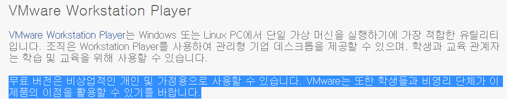 vmware 공식 홈페이지에서 다운로드 가능하며 무료버전은