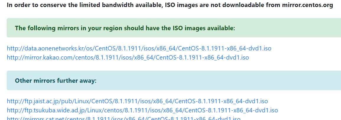 centOS의 iso이미지는 약 7GB이상이므로 가능한 빠른 다운로드 링크를 찾는 것이 중요하다.