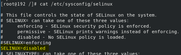 SELINUX=enforcing 을 #으로 주석처리한다.